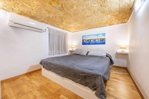 The apartment features a bright and spacious bedroom with a comfortable double bed and wardrobe, designed to offer you a restful sleep.
