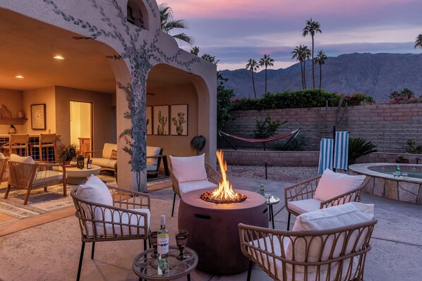 Nestled in the heart of Warm Sands, Casa Del Lobo offers a serene retreat with its walled and gated yard. Relax by the heated pool and spa, enjoy al fresco dining, or unwind by the cozy fire pit lounge while taking in grand mountain views.