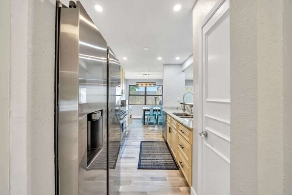Full kitchen with high-end appliances and granite counters