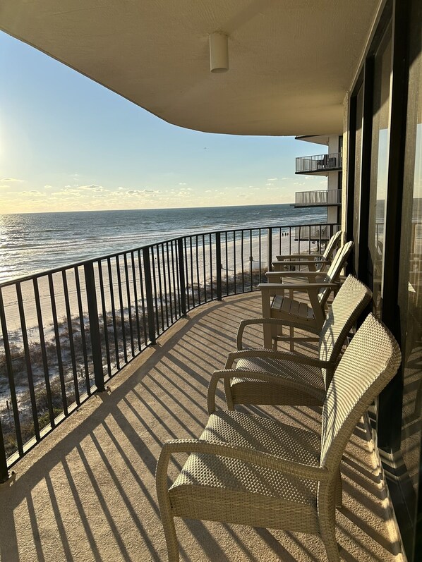 The positioning of the condo affords splendid vistas of both sunrises and sunsets. The convenience, and proximity, of the condo to the beach offers easy access to the beach and all available activities.