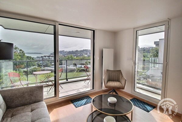 Your holiday apartment, on the 1st floor with elevator, is composed on one level: Entrance hall of the residence with digital code, A lift, A living room including the kitchen-living room, the lounge giving access to a small terrace with sea view and the island of Tomé, A separate toilet, A bathroom with shower, A bedroom with 2 beds of 80x200 that can be twinned on request, in bed of 160x200, Another bedroom with 1 bed 180x200 that can be separated on request, in 2 beds of 90x200. - Exteriors: Parking possible on the exterior parking lot of the residence with gate or in underground parking. Accommodation reserved for leisure customers. Everything is designed to make your stay unique. Whether you are looking for relaxation, leisure or thrills, a multitude of activities await you. The residence, overlooking a small campsite, offers a superb view of the sea and Tomé Island. Just an 11-minute walk away, the family beach of Trestraou offers a magnificent view of the 7 Islands archipelago. You will find a thalassotherapy center, restaurants, shops, boutiques, a cinema, a casino, a mini-golf course, and can embark on a tour of the 7 Islands aboard the vedettes. Above the beach, take the customs officers' path, the GR34, towards Ploumanac'h, an unmissable site with its pink rocks shaped by the sea and the wind, offering an exceptional natural landscape. A must-see! To avoid Saturday traffic jams, opt for this rental from FRIDAY to FRIDAY and start your stay with complete peace of mind! Superb apartment ideally located for a seaside holiday in a renowned seaside resort! Welcome to PERROS-GUIREC!