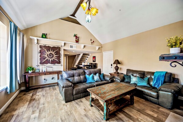 Two-level condo with loft bedroom, pool & hot tub, central A/C