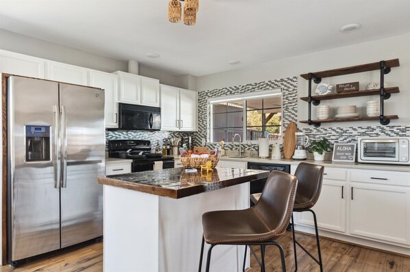 ✓ Fully equipped kitchen with electric stove, toaster oven, dishwasher, coffee bar, etc.