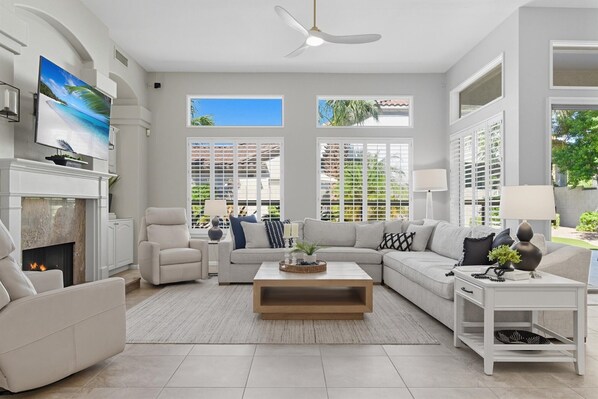 - Gas fireplace for cozy movie nights