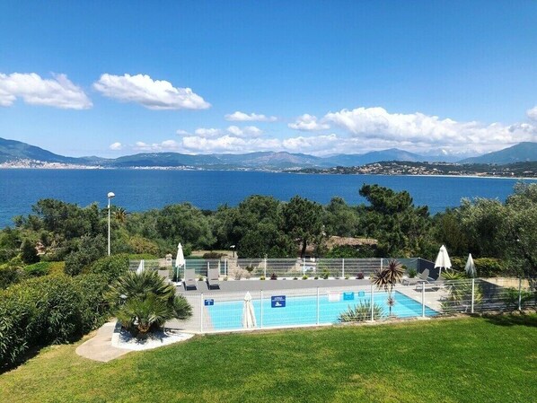 Luxury T3 apartment upstairs with fully equipped private terrace and offering a splendid sea view of the Gulf of Ajaccio to the Sanguinaires Islands.
