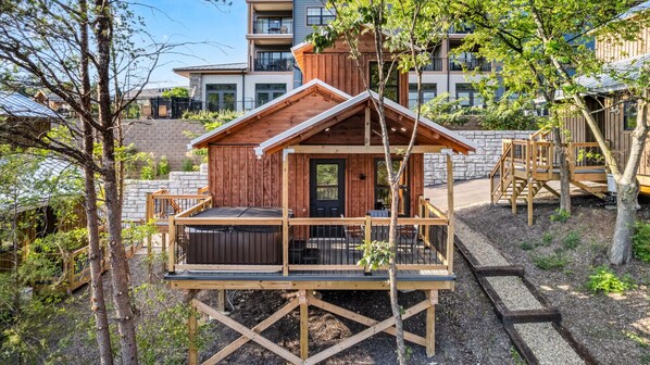 This place to stay is truly one of a kind stay in a TreeLodge. Located in Downtown Pigeon Forge, just minutes walk from the strip or seconds by car. Our Resort is a Walk Up resort, a short walk up to all Properties. On property staying in your TreeLodge you will have an amazing experience with Hot Tub on the porch, Mountain Views, and Located on our TreeLodge resort we offer Community Fire Pit, Pool Table, Ping Pong, and Rooftop Mountain view area perfect for hanging out with your family.