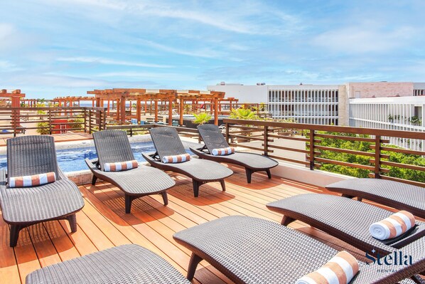 At Aldea Thai by Stella Rentals, visitors enjoy Playa del Carmen's vibrant energy while relaxing on the sun terrace or swimming in the outdoor pool. The property features a poolside bar, gym, and babysitting services. Guests consistently praise their experience.
