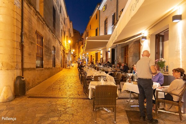 Outdoor dining - Appealing Villa, A/C, Private Pool, Pretty Garden, Great Location, 5 mins walk to Old Town Pollença (Pollença)