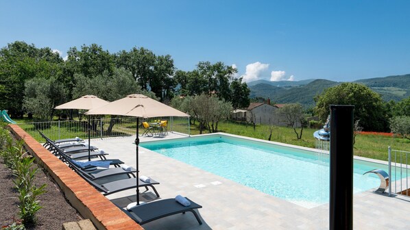 Nestled in a lesser-known corner of Tuscany, Casa La Fenice offers an enchanting retreat. Unwind on the panoramic terrace or explore the fenced garden with dry-stone walls, fruit trees and olive groves. This charming residence features a hydromassage tub, barbecue area and newly-constructed swimming pool for endless relaxation.