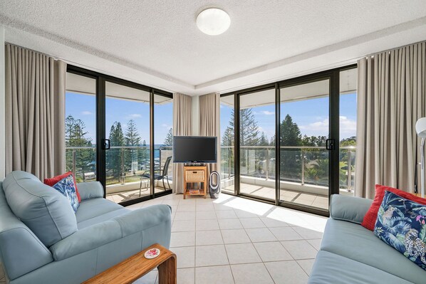 Offering a pleasant outlook over the break wall, this unit has all the conveniences needed whilst on holidays, including two bedrooms with a queen sized bed, in the main bedroom and 2 singles in the second bedroom, ceiling fans in both bedrooms.