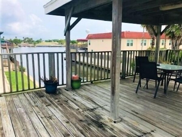 Outdoor dining - Serenity Home. 2 Bedroom, 2 Bath. Sleeps 6. 5 Beds. 2 Boat Slips. Fishing Light. (Port Mansfield)