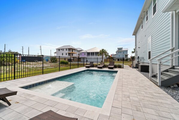 Private fenced-in pool + private yard