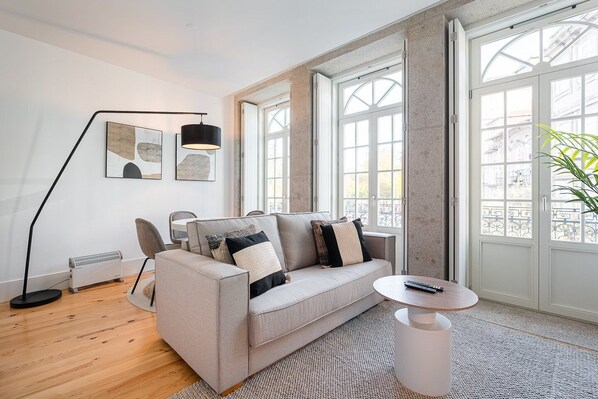 Welcome to this charming one-bedroom apartment in the heart of Porto's historic centre. With an open floor plan, a private balcony with seating areas, and essential amenities such as a fully equipped kitchen and laundry equipment, you'll feel right at home. Enjoy comfortable living with hotel-quality linens and clean towels provided.