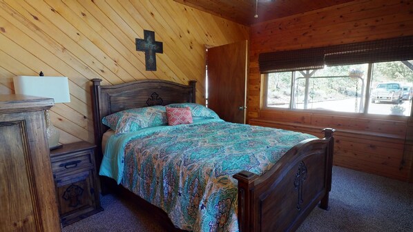 This cabin is well appointed, comfortable, and spacious! We enjoyed preparing our own meals in the full sized kitchen with all the cookware and utensils we needed. The beds were very comfortable and leather sofas great for lounging. For a week stay we felt relaxed and well provisioned at this hope away from home. The hosts Terry and Juli were very friendly and easy to communicate with.