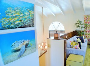 Escape to Hideaway Villa, a Caribbean beach-house style retreat where you can unwind in the private saltwater pool or bask in sunset views from the balcony. Enjoy plush lounge seating and cozy interiors adorned with beautiful local artwork. Walk to Grace Bay Beach, snorkel on Bight Reef, or stroll through nearby restaurants.