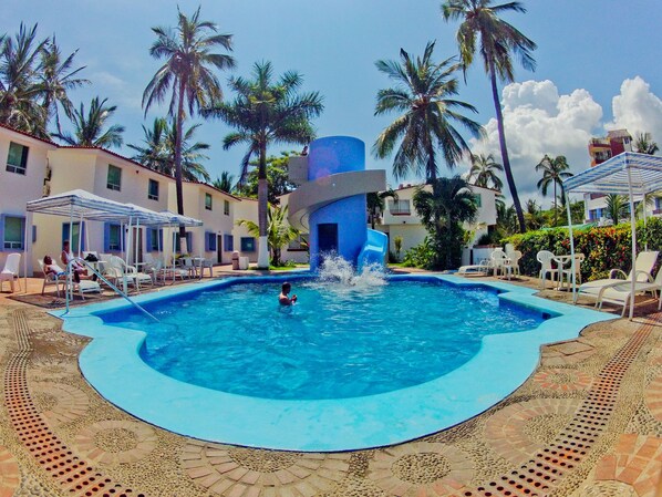 Suites Princess offers comfort steps from the shore. Guests enjoy an outdoor pool with a waterslide, sun beds with umbrellas, and spa massages. The property features on-site designer shopping and free WiFi in public areas to stay connected.