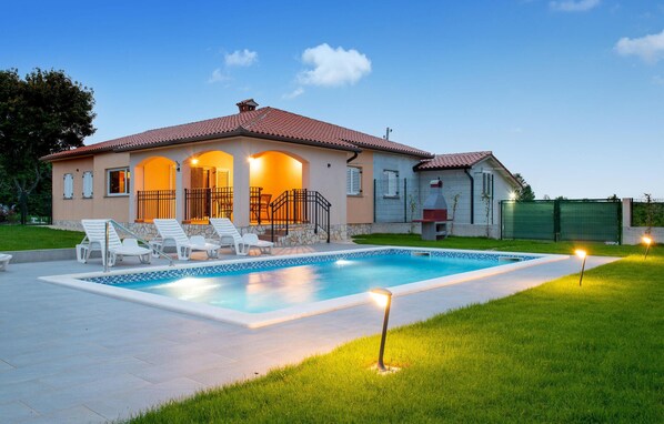 Wir hatten einen wunderschönen Aufenthalt in diesem Ferienhaus. Lage wunderbar ruhig gelegen, und doch nur 10 Minuten mit Auto oder Fahrrad weg von der Stadt wo von Lidl, Spar, Plodine, Müller usw alles zusammen liegt. Zu den Stränden muss man je nachdem welcher ca immer 30 Minuten oder mehr planen.Im Haus hatten wir alles, von Spültaps, Waschmittel, alles war da. Vermieter super lieb, hilfsbereit wenn man sie braucht, ansonsten sieht man niemanden. Pool sehr sauber, Haus Mega sauber. Für Hunde großes Grundstück mit viel Wiese. Nicht weit vom Haus ein wunderschönes Gebiet wo man im Schatten weitläufig mit Hund oder Rad unterwegs sein kann. Wir kommen gerne wieder.