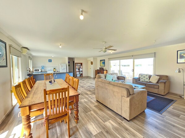 Stay minutes from Long Beach in the quiet cul-de-sac of Baudin Place. Miramare promises all the comforts of home with open plan living, dining and fully equipped kitchen. With 3 bedrooms and 1 bathroom to sleep 8 people, featuring 2 queens and 2 bunk beds. Relax on the gorgeous lounges in front of the large flat screen TV or kick back on the deck with outdoor setting and BBQ. (Located in the shed)