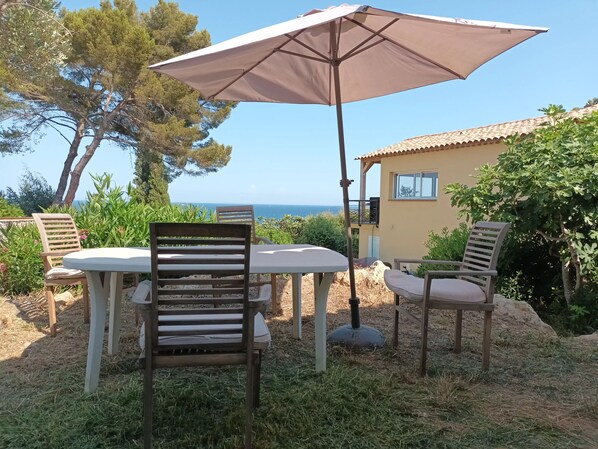 Well-kept apartment with garden, sea view, in a closed, quiet area. Domain, pools, tennis.