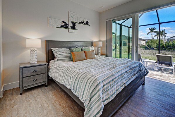 Escape to Blue Pearl, a cutting-edge 3-bedroom retreat in the heart of Rotonda. This eco-friendly haven boasts an expansive pool deck with a solar-heated pool and hot tub, perfect for unwinding after exploring nearby beaches and golf courses. The modern interior features luxury vinyl flooring throughout, while the lanai offers seamless indoor-outdoor living with its stacking sliders and ceiling fans.