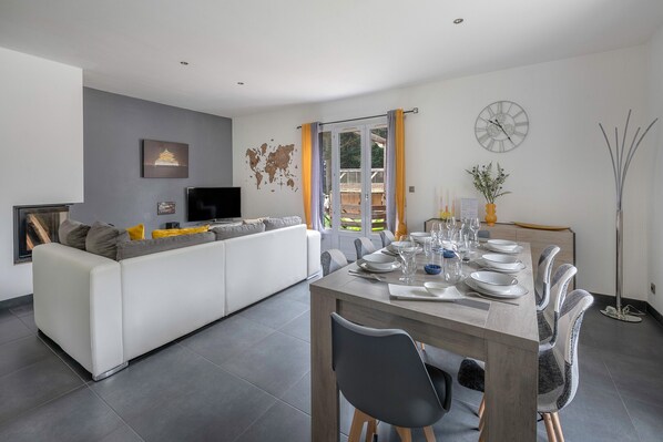 The kitchen is equipped with all necessary household appliances to make you feel at home: induction hob, oven, microwave, fridge-freezer, filter and TASSIMO pod coffee machine, toaster, kettle, citrus press. The dining room - living area has a television, Wi-Fi access (Fibre Network) and a fireplace. Two shower rooms with toilets complete the rental. Also enjoy a 20m² wooden terrace with garden furniture and charcoal BBQ. Private parking space on the property.