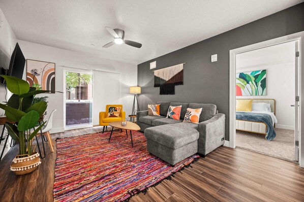 Summary: Experience luxury in our spacious apartment located in the heart of SLC. Enjoy stunning mountain views from the open floor plan and modern bohemian decor of the spacious living area with a large flat-screen TV. The fully equipped kitchen and en-suite bathroom with a luxurious shower make your stay comfortable. The central location puts you just steps away from restaurants, bars, entertainment venues, university, hospitals and convention centers. Book now and enjoy the best of Salt Lake City.