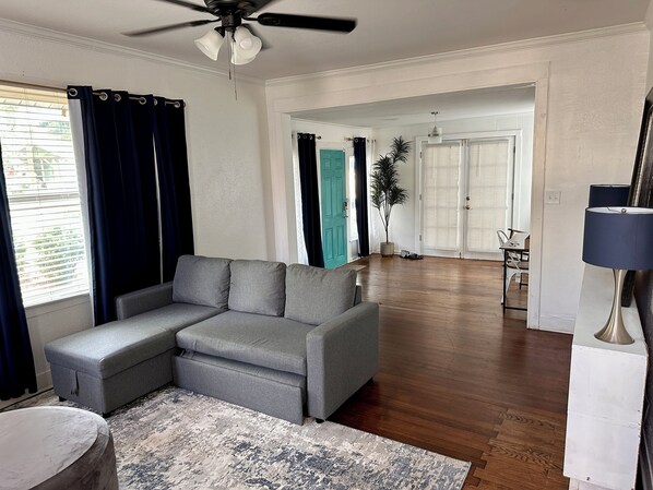 Experience the charm of Mahncke Park at Queen Anne, a spacious 4-bedroom home perfect for up to 6 people. Spend mornings on the inviting porch and enjoy convenient kitchen and living spaces. With proximity to San Antonio Botanical Garden, Broadway Street, and downtown via excellent public transit, this cozy retreat offers access to nature and culture.