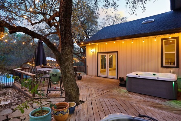 Terrace/patio - Holiday Retreat! 5-bed, Pool, Hot Tub, Mini Golf, Game Room, Playground and More (San Antonio)