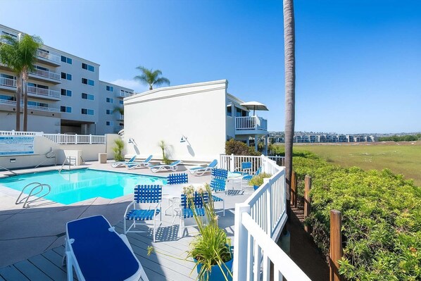 On beach with outdoor pool, near Mission Bay