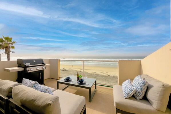 Step into your seaside sanctuary in this stunning upper-level oceanfront condo in Mission Beach! Spread across approximately 1,400 square feet, this bright and airy retreat boasts three bedrooms and three full bathrooms, offering plenty of room for family and friends. Floor-to-ceiling windows flood the home with natural light and frame breathtaking, uninterrupted views of the sparkling Pacific. Start your mornings with a cup of coffee on your private balcony as the gentle waves roll in and the refreshing ocean breeze surrounds you. With modern amenities and easy access to the lively boardwalk, local shops, and the iconic Belmont Park, this condo perfectly blends relaxation, adventure, and classic Southern California coastal charm!