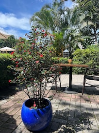 Yes, this property has an outdoor pool. Pool access is from 6:00 AM to 8:00 PM.