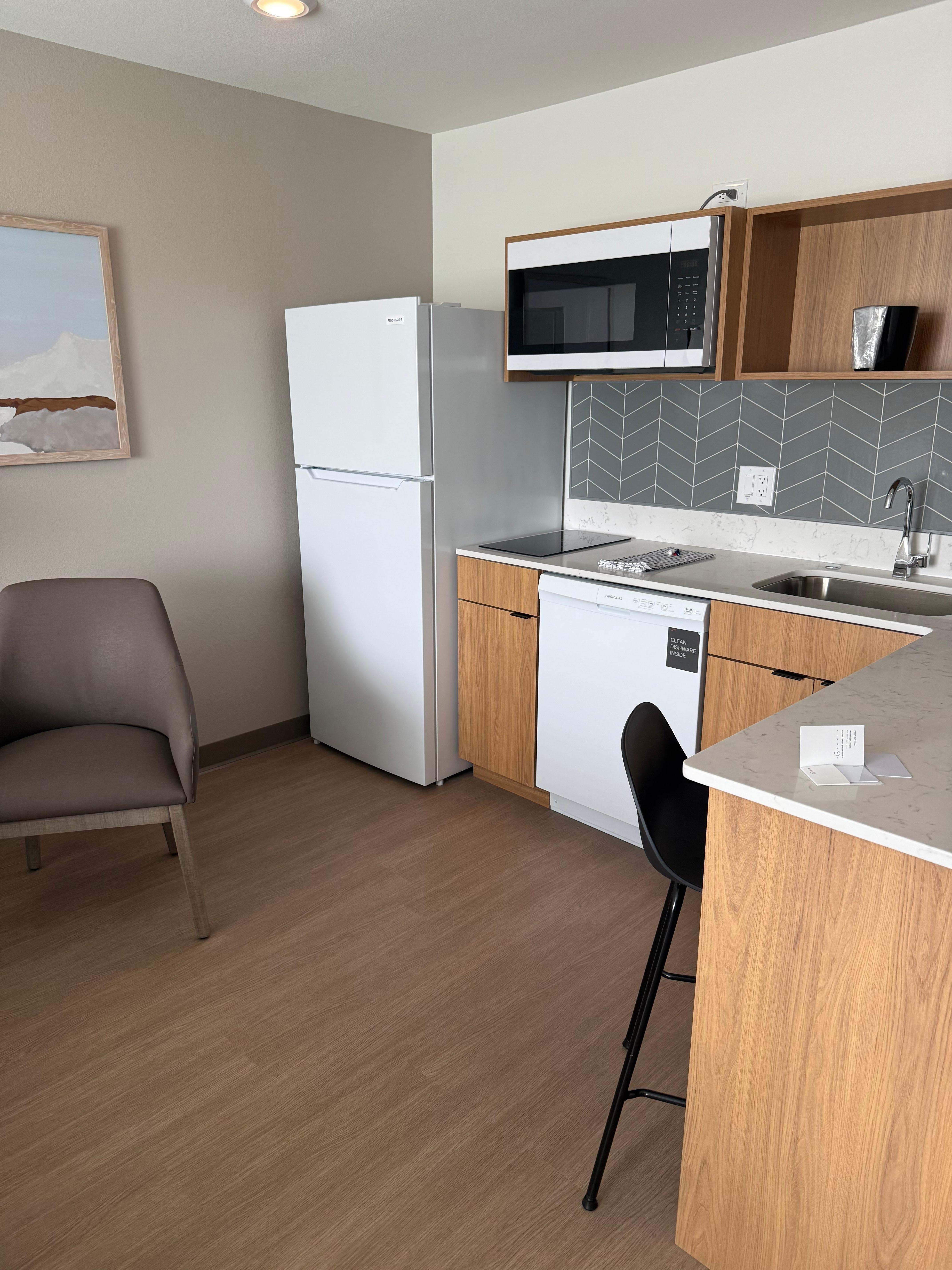 Excellent Hotel! Brand new, clean room, great staff, full kitchen, comfortable beds, wood floors, and nice quiet property. I would highly recommend anyone to visit and stay here. We will definitely stay here again. Thank you!