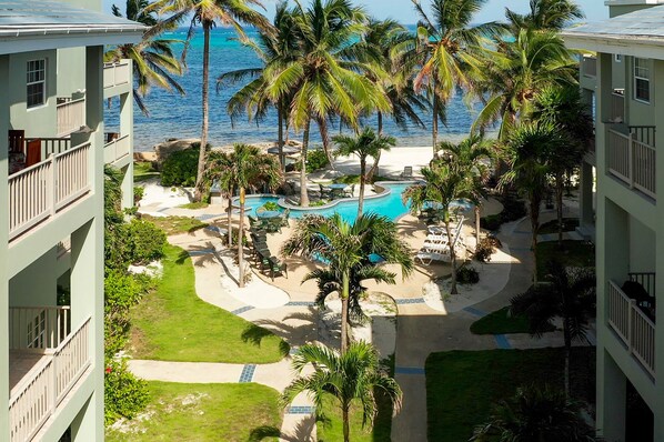 Part of 'The Landings at Tres Cocos' family, which includes additional one, two, three and five bedroom options, this condo is located just north of the bridge at the cut and less than one mile from San Pedro Town. Close to restaurants, bars, and shopping yet far enough away to be quiet and relaxed. Guests of the property enjoy two fresh water swimming pools, a salt water swimming pool, a beachside BBQ cooking station, dock and an on site management team that can assist you as needed. Our goal is to ensure you have a relaxing and unforgettable vacation while enjoying all that San Pedro and Belize have to offer.