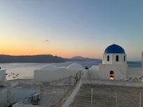 Aethrio Sunset Village - Oia is steps from the Blue Dome Church Viewpoint. Guests enjoy breakfast, an outdoor pool, and a rooftop terrace with panoramic views. The landscape is perfect for hiking and biking. Multilingual staff provide helpful service and in-room WiFi.