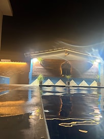 Yes, this property has an outdoor pool. Pool access is from 9:00 AM to 10:00 PM.