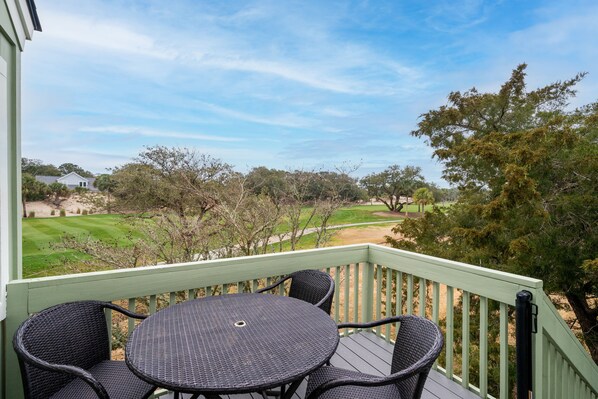 Below the villa is the patio. A great spot for grilling or golf course watching. The golfers will be putting out on the green. Views stretch up and down the 11th fairway. Wash away the beach sand under the outdoor shower. Across the street from this neighborhood is Boardwalk 3, a straight shot down to North Beach. You are also an easy bike ride to the main Beach Club area. Here you will find the island's two 18-hole golf courses, two beach front pools and Pelican's Nest outdoor dining. At the top of Seabrook Island is the Racquet Center: with 15 Har-Tru tennis courts and Pickleball Courts, The Equestrian Horse Center, and the Lake House's outdoor pool and fitness center.