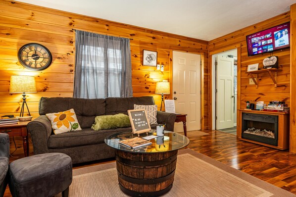 All guest rooms at Secluded Brown County Cabin | Hot Tub | Hoosier National Forest include thoughtful touches, such as fireplaces and air conditioning, as well as amenities, such as free WiFi.