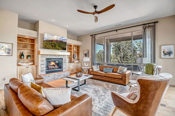 TV, fireplace - Relax in luxury at Sedona Illuminated, a 4-bedroom retreat in West Sedona. (Sedona)