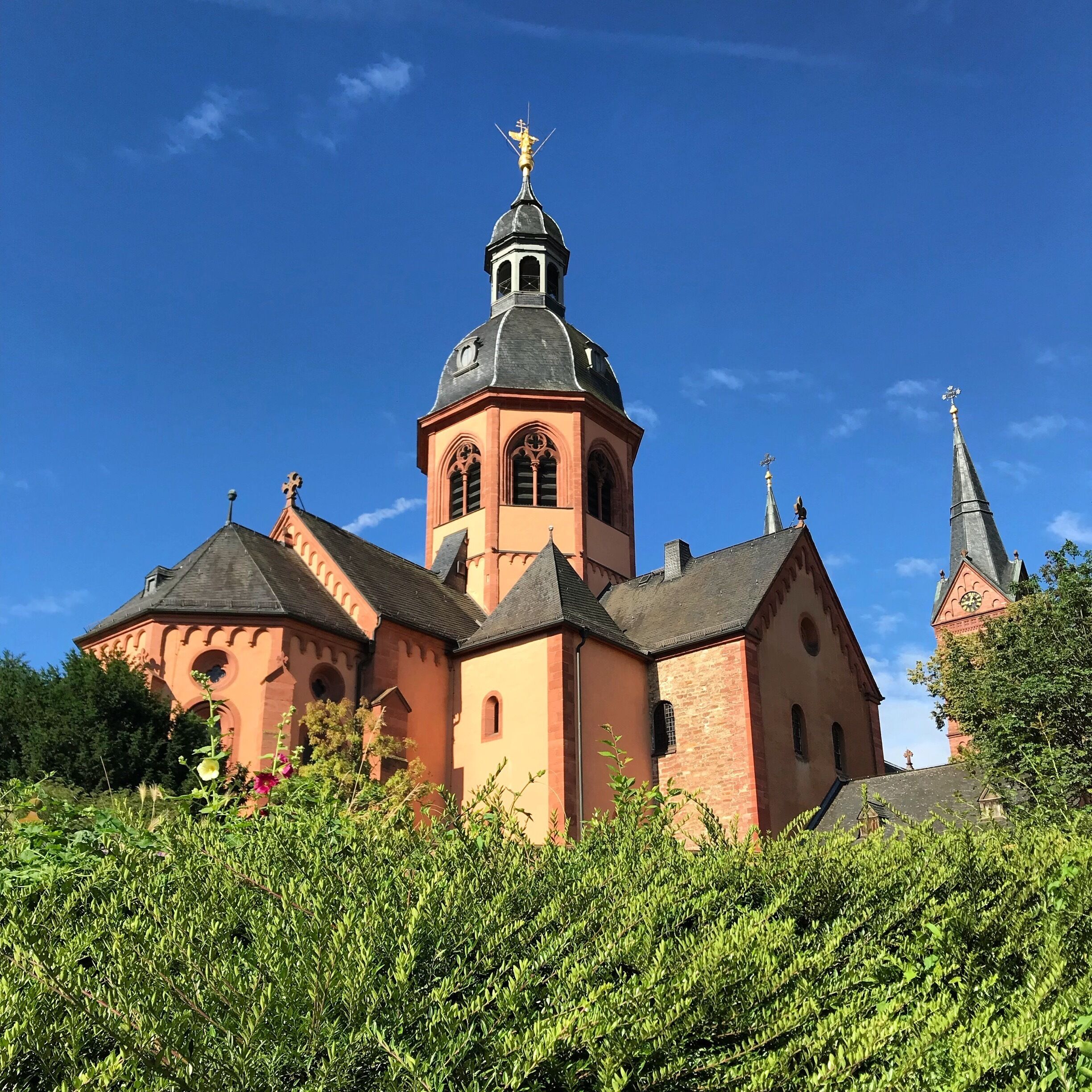 Wander through the medieval Benedictine abbey's peaceful Klostergarten, where centuries-old herbs and flowers flourish beside magnificent architecture. The charming Marktplatz and stunning Einhard Basilica offer perfect starting points before exploring the scenic Mainufer Promenade along the river.