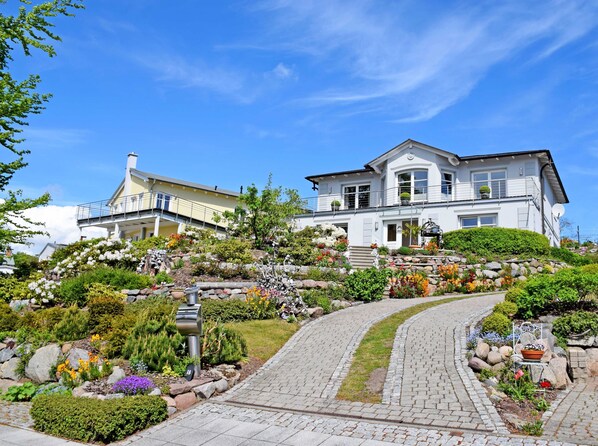 The villa is located in the center of Ostseebad Sellin near the water park with sauna, solarium, mini golf, ice rink in winter, bike rental, shops and post office. The villa was designed in the style of the spa architecture. It is only 400 m to the sandy beach. Also to the bus stop and to the train station of the Rasender Roland it is not far. Several restaurants and cafes are within walking distance and the famous pier and the historic Wilhelmstraße are about 100 - 200 meters away. The Baltic Sea itself has several beaches and is surrounded by beech forests, hills, old fishing villages and is located in the UNESCO Biosphere Reserve South-East Rügen. Our apartments are right next to each other, are about 48 square meters and fully equipped to 4-star level. Lockable bicycle storage facilities are available. In addition, you are welcome to use our laundry drying area.