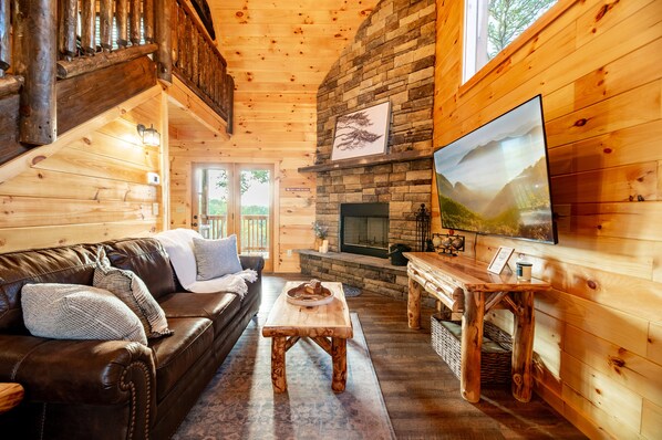 Escape to Hazels Haven, a modern cabin retreat in the Great Smokey Mountains. Savor mountain views from the back porch, hot tub, and loft bedroom while relaxing amidst peaceful surroundings. A fully equipped kitchen with a Keurig coffee maker and wood burning fireplace create an inviting ambiance.