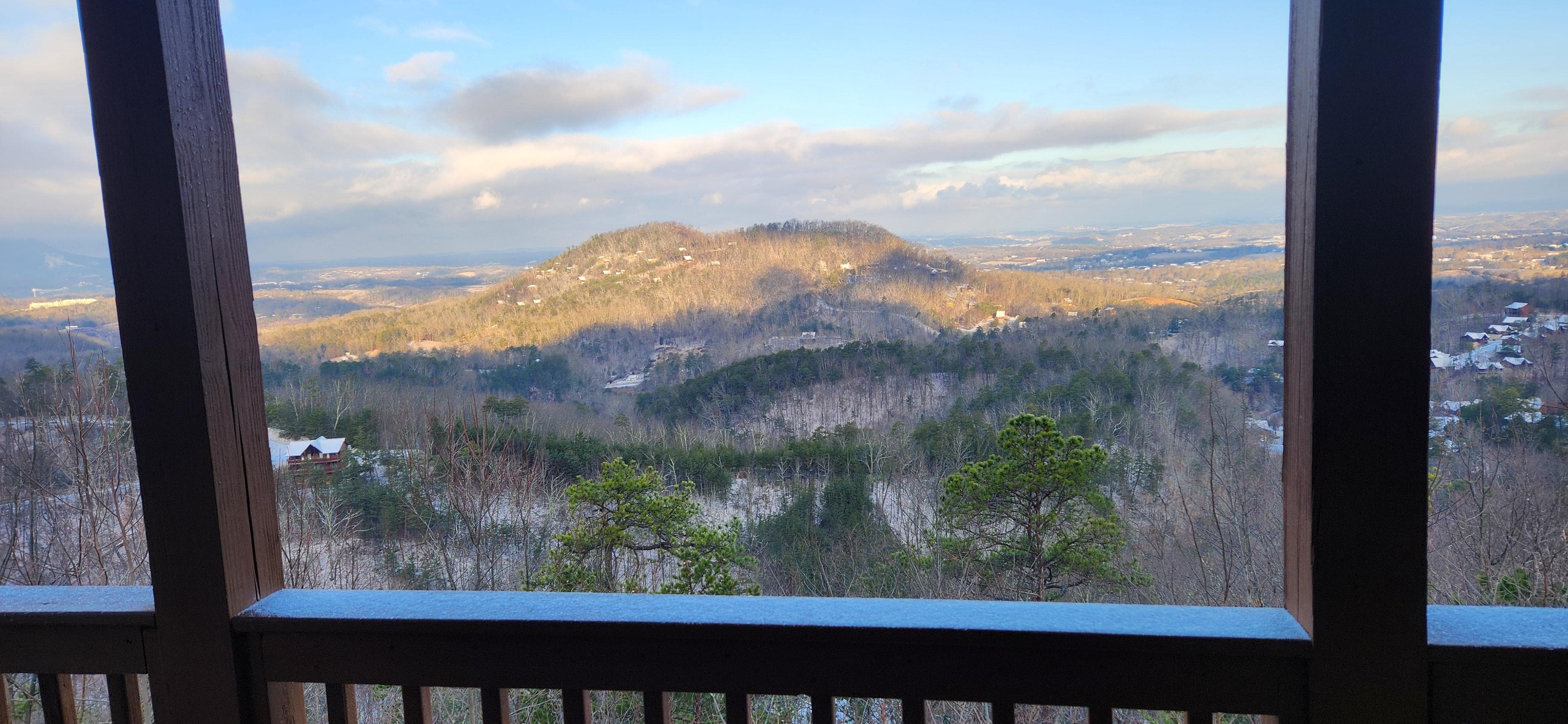 The covered deck offers an outdoor hot tub and rocking chairs. Kick back with a glass of wine and enjoy this amazing view. There is no better place you’ll want to be during a sunset! 🌄 . In the summer months you can end your day with a fantastic view of the Dollywood fireworks display. 🎇 🎆