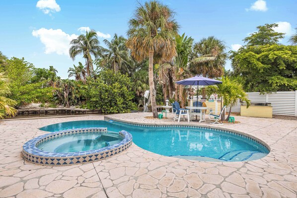 Canal home short walk to Beach & Village, Heated Pool-Jacuzzi, Private courtyard