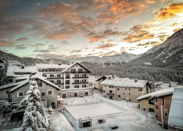 Es ist ein tolles Hotel mit sehr guten Restaurants dazu ist die Lage in dieser kleinen Ortschaft vor St.Moritz Top. Der Bus fährt vor dem Hotel nach St.Moritz.