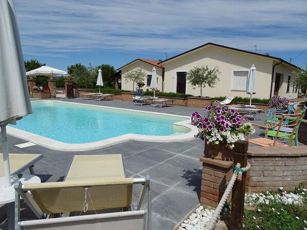 Yes, this property has a seasonal outdoor pool. Pool access is from 9:30 AM to 7:30 PM.