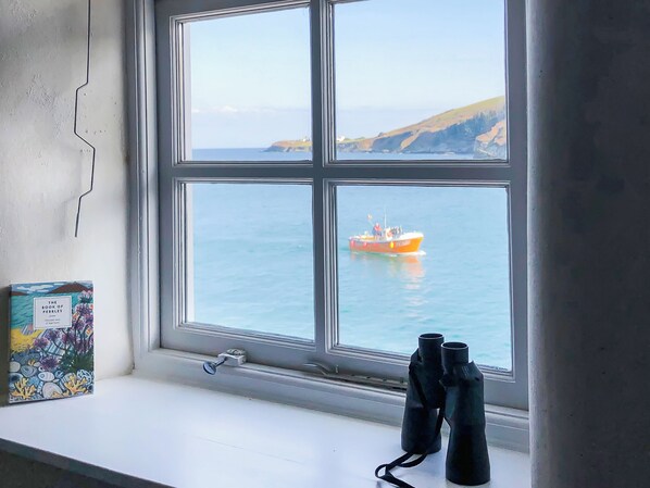 Bedroom: Zip And Link Super Kingsize Bed (2 x Singles On Request) Ensuite: Bath With Shower Over, Toilet. Uninterrupted sea views. Two patios. Electric heaters, bed linen, towels and Wi-Fi included. Patio with garden furniture. Lower waterfront terrace (shared with cottage next door). On road parking, 80 yards away. High water mooring. No smoking. Please note: There are steep steps leading to the waterfront terrace which are unsuitable for the less mobile.. Puffin Burrow is a charming, historic, romantic couples retreat by the edge of the beautiful cove, in the traditional Cornish village of Portmellon.
