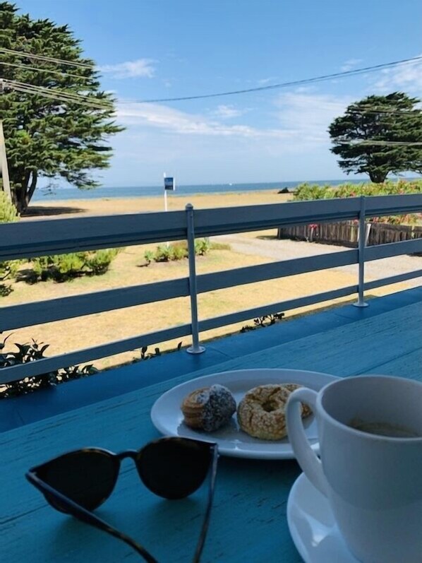 This beach shack has the sensational view, very quiet road, easy walk to the beach and a great walking track in either direction. You can walk to the pier and watch boats take off or the odd pelican or two. St. Leonards is a great place to base yourself if looking around the peninsula. The local fish and chip shop in St. Leonards is well worth it! My husband reckons they have the best burgers and he's a bit of a conossoir when it comes to them... The bed was so cosy and warm, had the best sleep in a while. Everything you need in a house is there for you, you could cook up a storm or go check out the local wineries for meals..Kelly was great in giving us an extensive list of places to check out and all were superb. We loved our 4 day stay and we'll be back in summer!