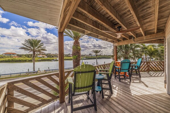 Outdoor dining - Cypress & Sun on Gulf – Water Views, Beach Access, Fishing Dock & Coastal Comfort (Indian Rocks Beach)