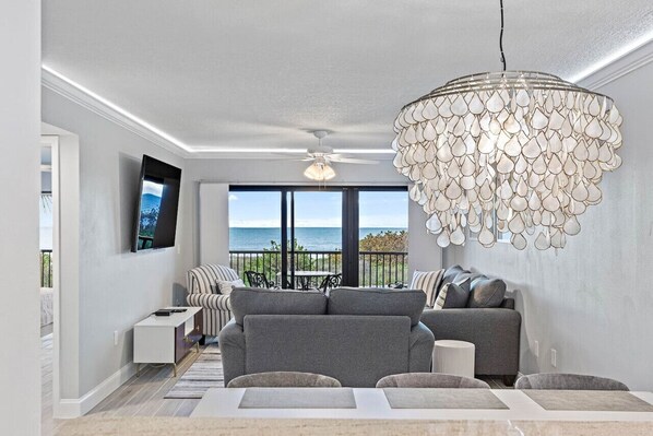 Welcome to our stunning 2-bedroom, 2-bathroom beachfront private condo! Nestled in a prime location, this luxurious condo offers breathtaking views of the ocean and provides the perfect setting for a memorable vacation. As you step inside Land's End 11-206, you'll immediately be struck by the elegant, completely renovated, and modern design of the condo. The spacious living area is tastefully furnished, featuring comfortable seating and large windows that allow plenty of natural light to illuminate the space. Whether you're lounging with a book or enjoying a movie night with loved ones, this room offers a cozy and inviting atmosphere. Adjacent to the living area, you'll find a fully equipped kitchen that will delight any aspiring chef. It boasts sleek countertops, high-end appliances, and ample cabinet space, making meal preparation a breeze. Enjoy your culinary creations at the dining table, which provides seating for the whole family. The condo features two well-appointed bedrooms, each offering a peaceful haven to unwind after a day of exploration.