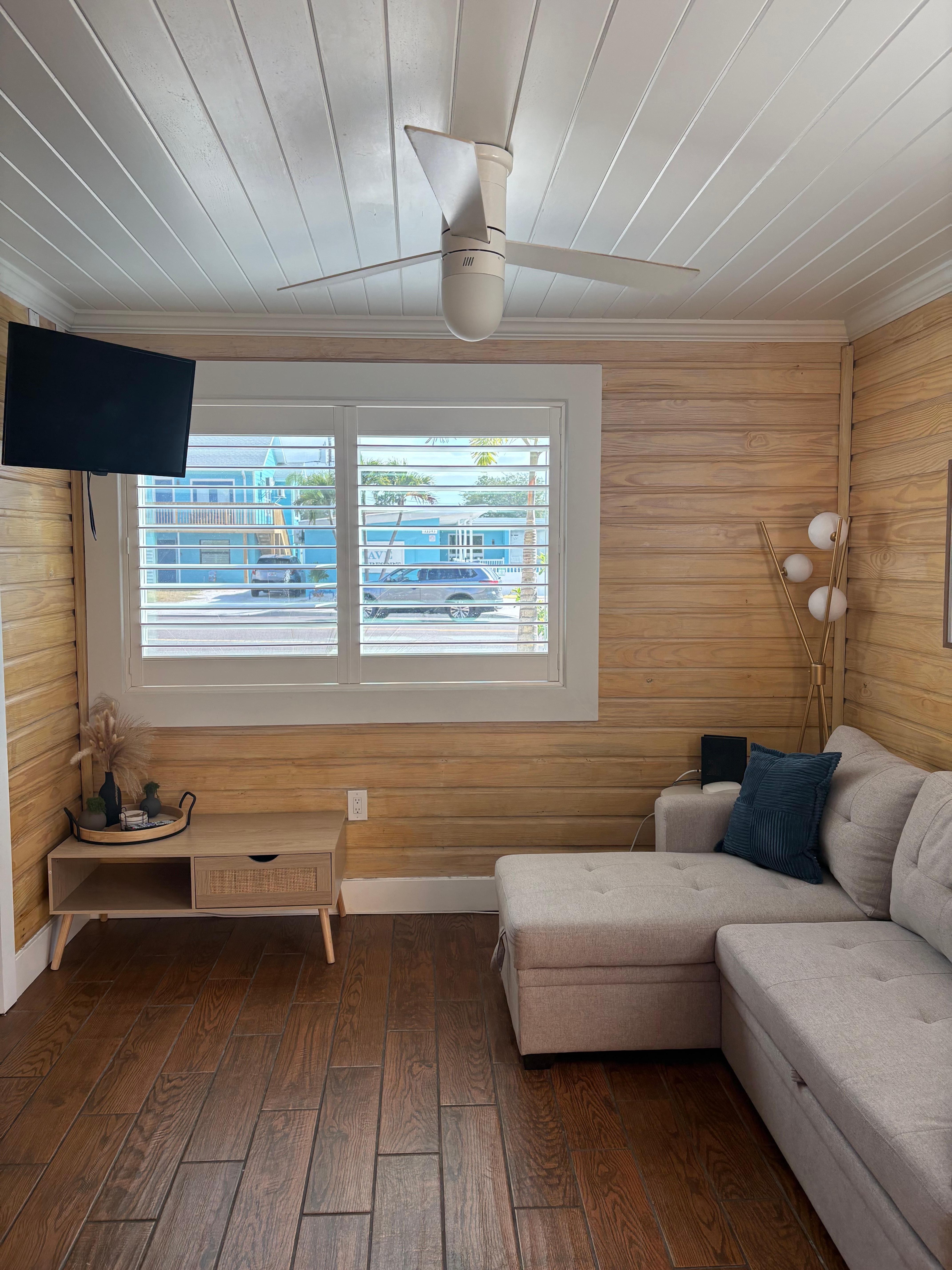 Relax in the cozy and inviting living room, perfect for unwinding after a day at the beach.